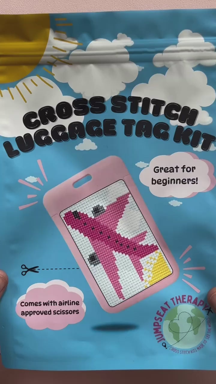 Pink Airplane Cross Stitch Kit - Complete Travel Luggage Tag Kit